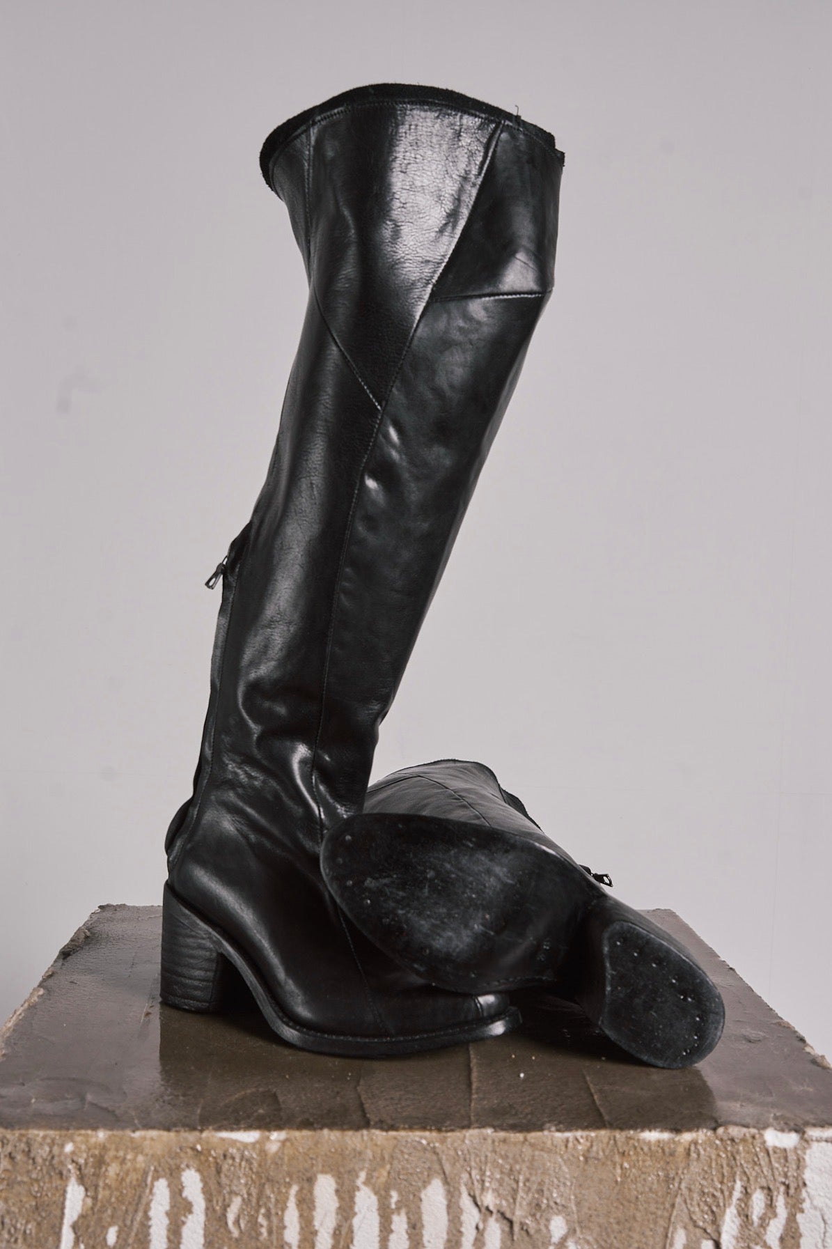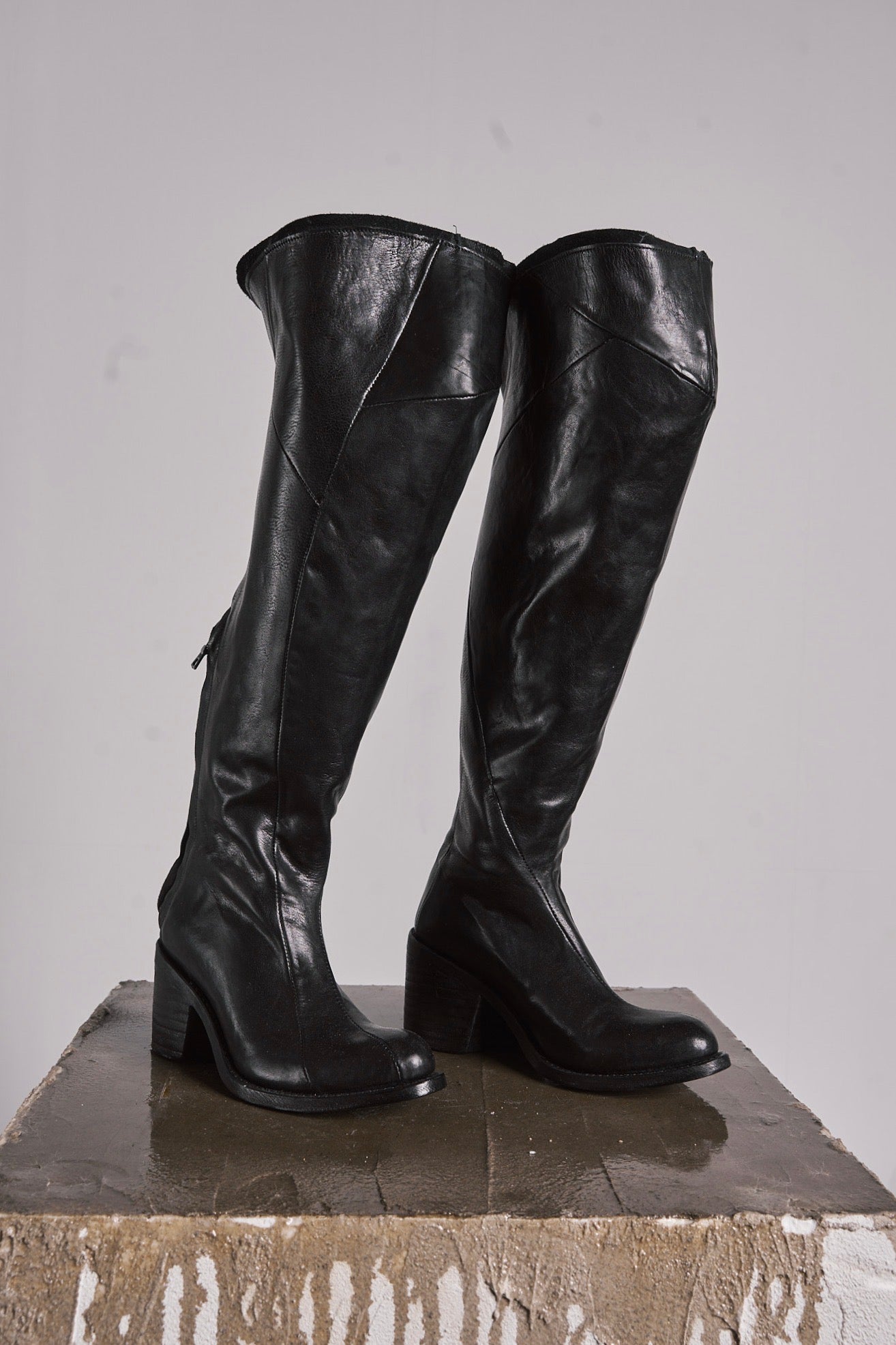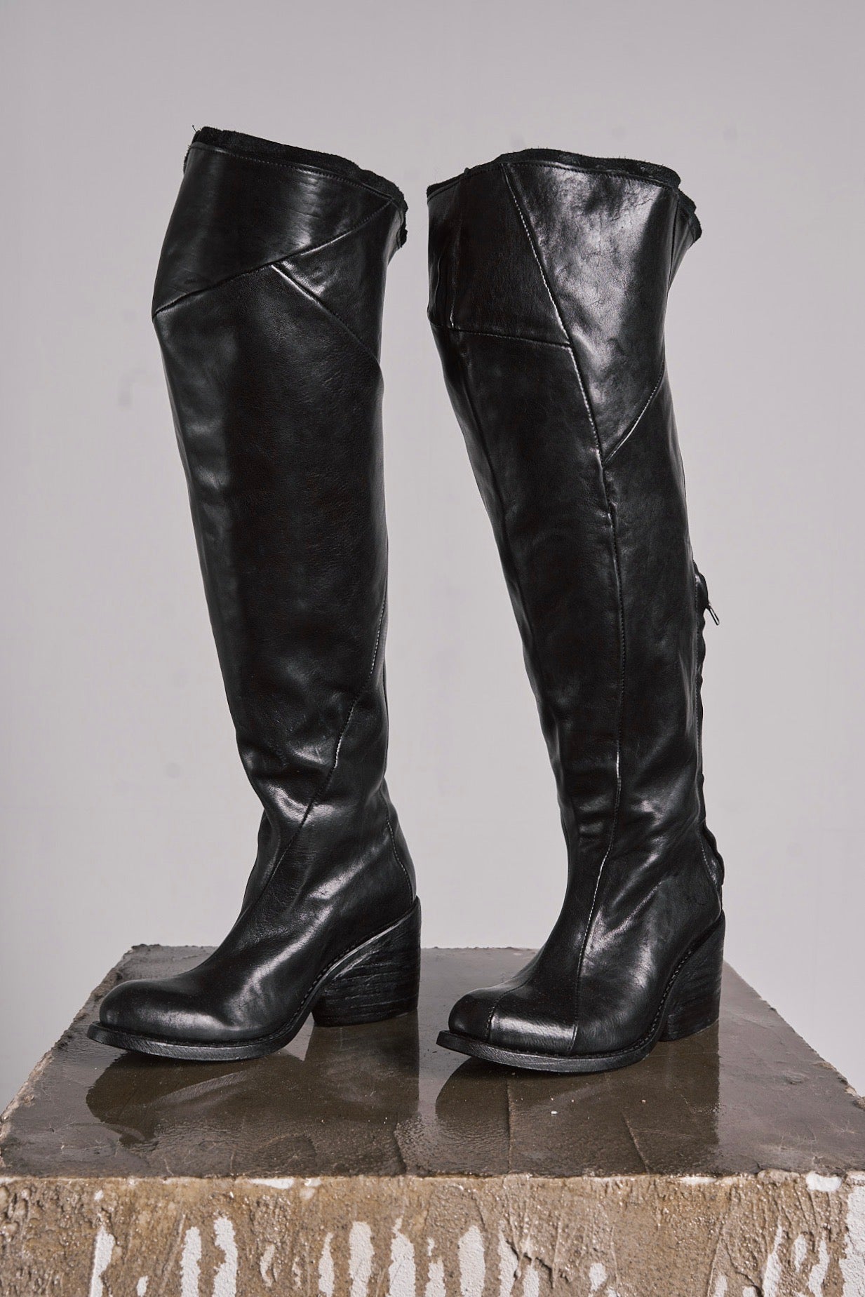 WOMENS OVERKNEE BOOT IN BLACK GUIDI 1.4MM HORSE LEATHER. FEATURING EXAGGERATED KNEE AND HIGH SHAFT. WITH RIRI ZIPPERS AND BUFFALO LEATHER LINING.