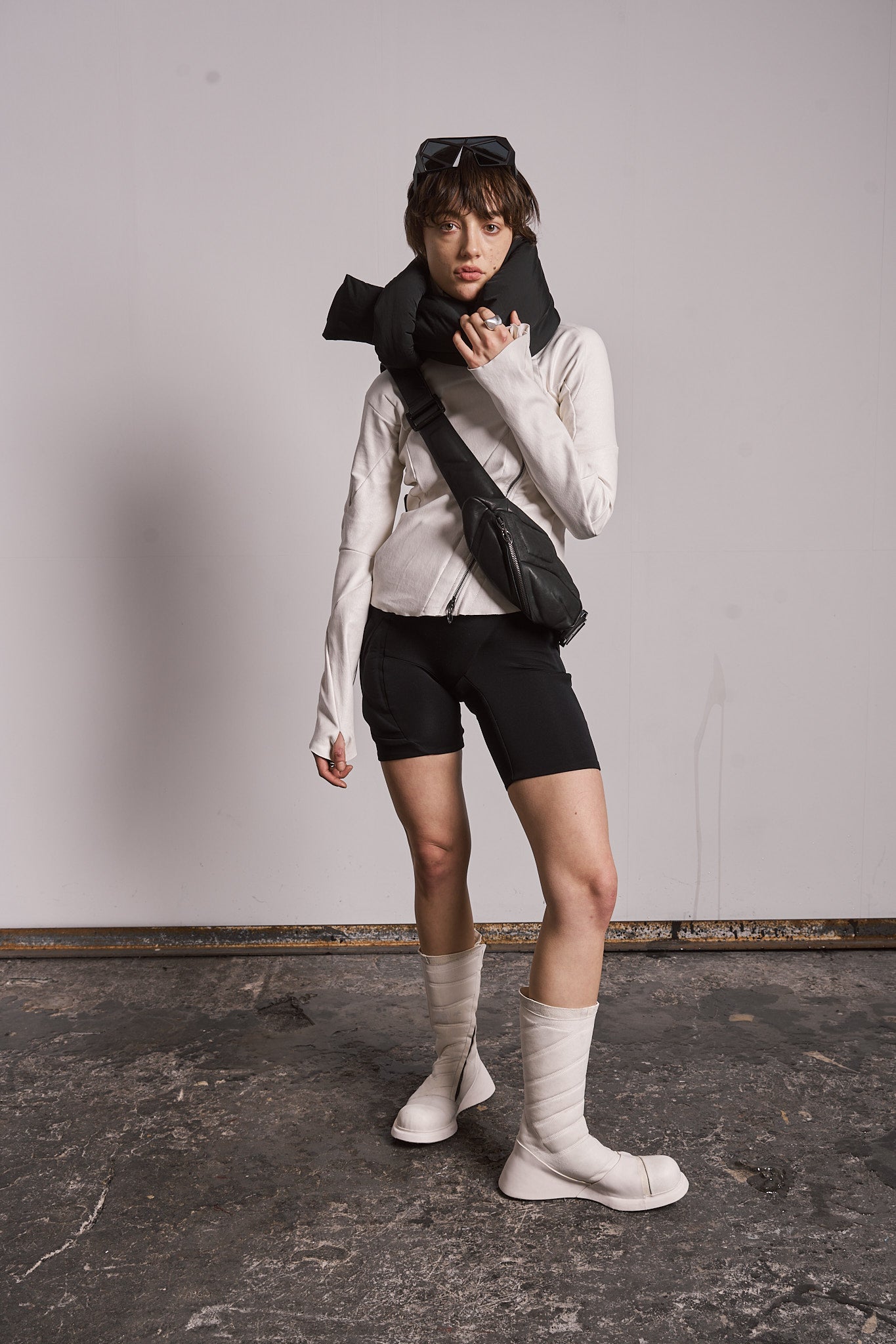 CONNECTED BAG SYSTEM CONSITING OF TWO INDIVIDUAL BAGS WITH ONE COMPARTMENT EACH. FEATURING A RIRI METAL ZIPPERS AND OUR CUSTOM TEARDROP PULLER. COBRAX BUCKLE AND STRAPS FOR ADJUSTABLE FIT. PADDED HORSE LEATHER.