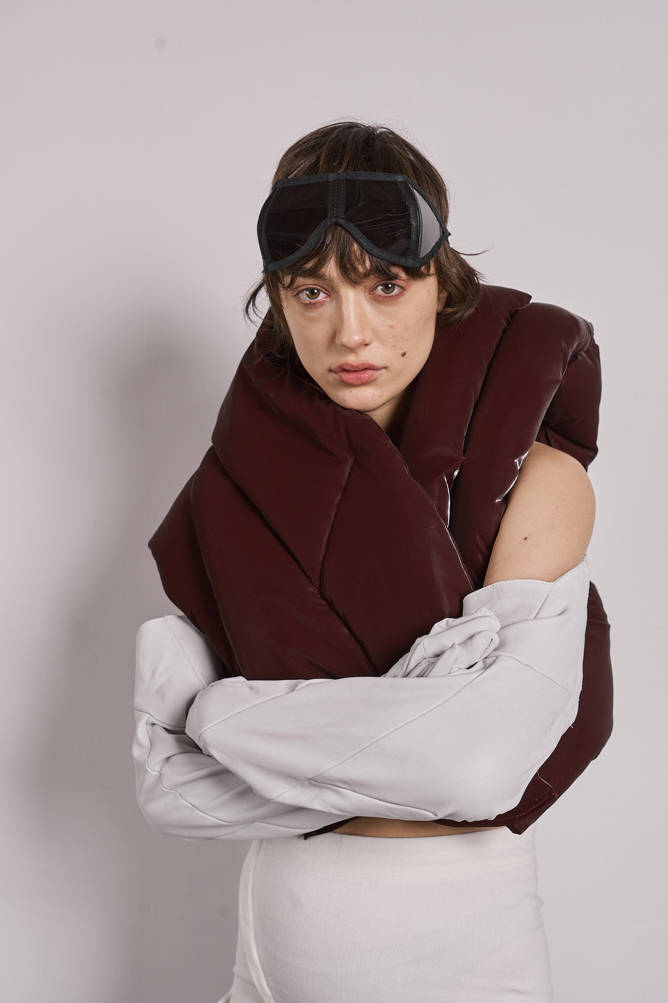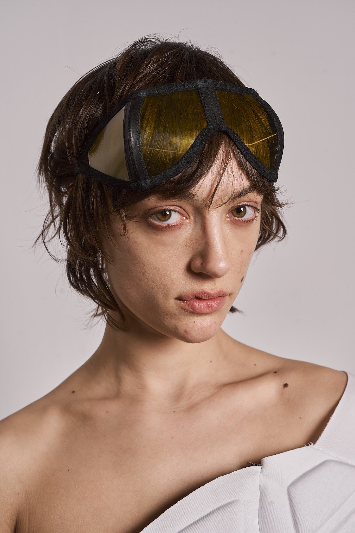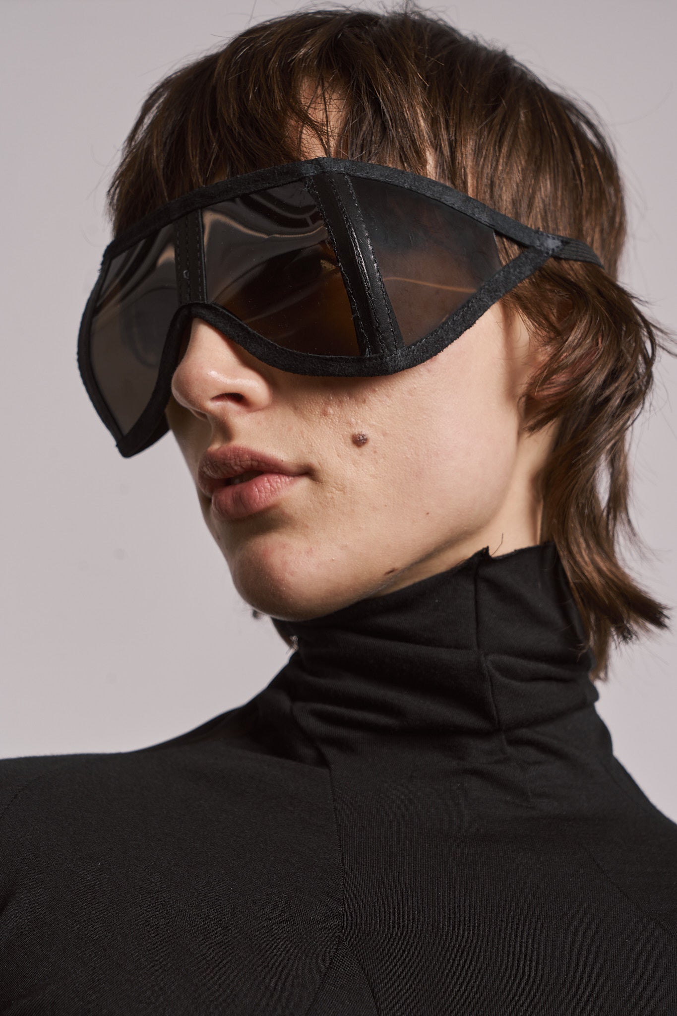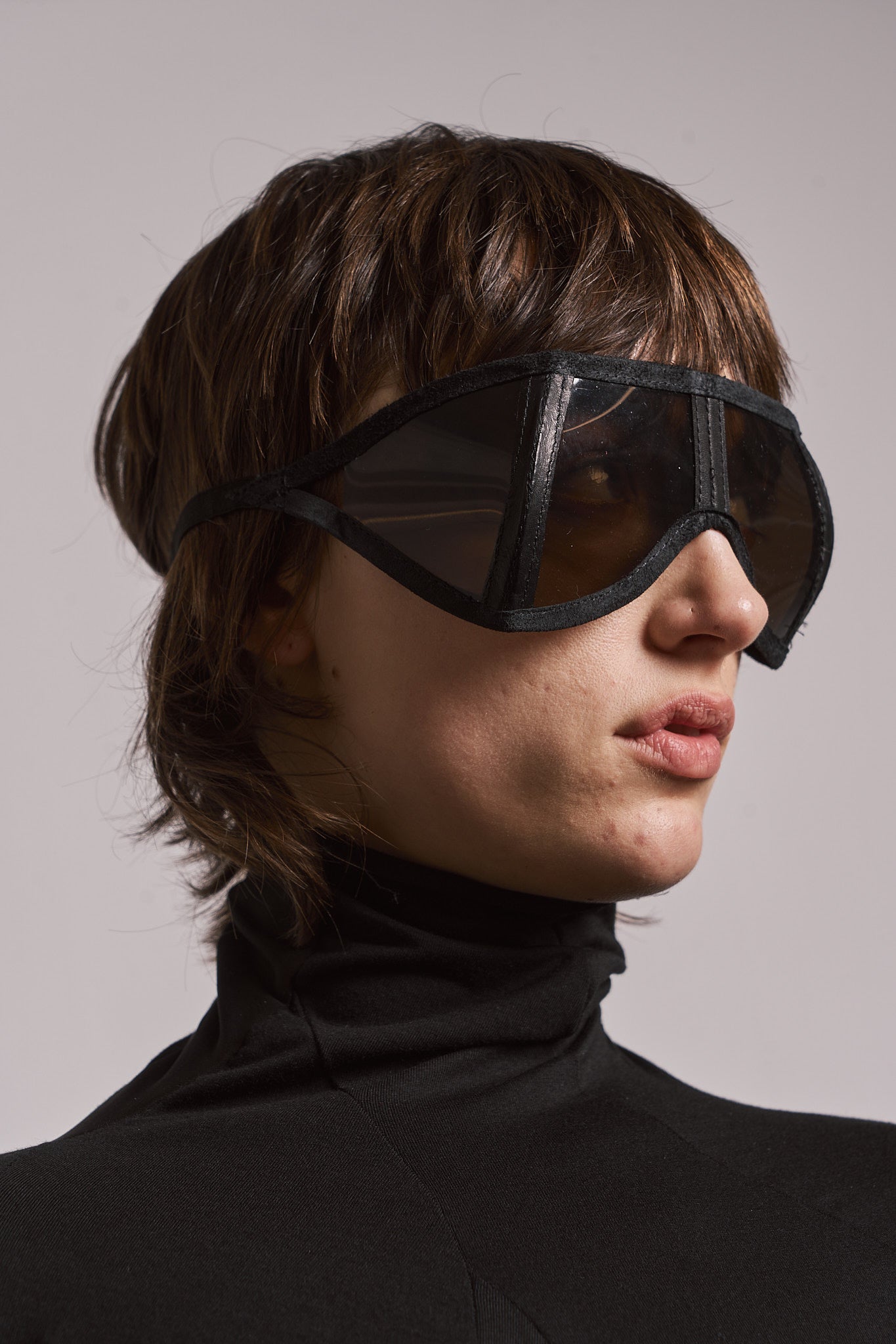SYMMETRICAL HORSE LEATHER MASK WITH 4 TRANSPARENT LENSES. AVAILABLE IN MULTIPLE COLOURS.